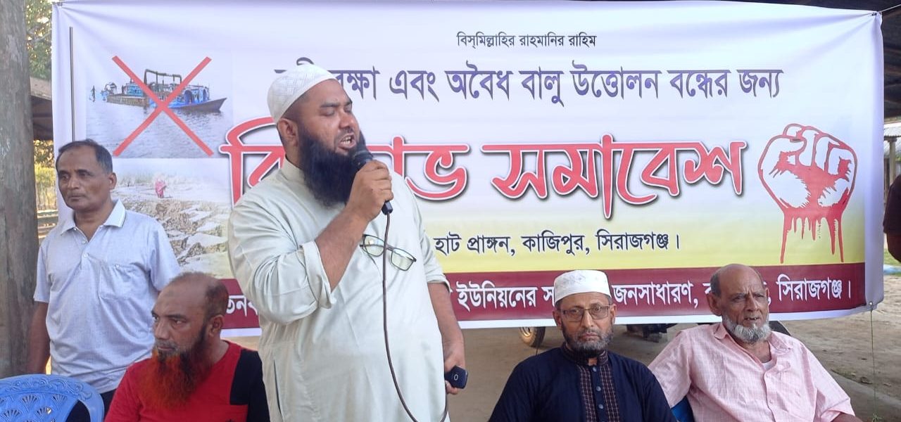 বীর মুক্তিযোদ্ধা সাইদুল ইসলামের সভাপতিত্বে ও মশিউর রহমান লিটনের পরিচালনায় বিক্ষোভ সমাবেশে বক্তব্য রাখেন আবু হাসান, জাহাঙ্গীর আলম তারেক, ইমরান হোসেন ইমন, রুহুল আমিন, শাহ আলম মাষ্টার, আল আমিন, আক্তারুজ্জামান প্রমুখ। বক্তারা অবিলম্বে অবৈধ বালু উত্তোলন বন্ধের জোর দাবি জানিয়েছেন। দাবি না মানলে পরবর্তী স্মারকলিপি ও মানববন্ধন কর্মসূচি ঘোষণা করা হবে জানিয়েছেন। যমুনা নদী ভাঙ্গনের রতনকান্দি, শুভগাছা ও গান্ধাইল ইউনিয়নের কয়েকশ’ ভিটামাটি হারা মানুষ কয়েক ঘণ্টা ওই বিক্ষোভ সমাবেশ উপস্থিত ছিলেন।
