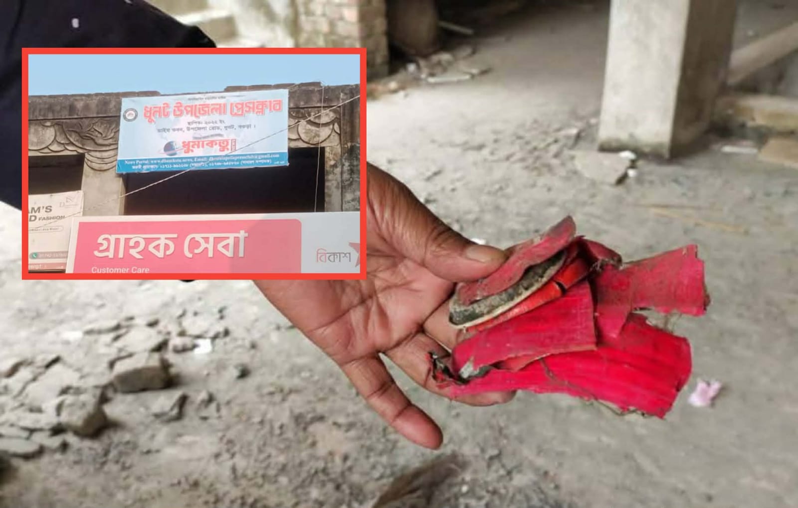 শনিবার (২০ ডিসেম্বর) দুপুরে পৌরসভার কেন্দ্রীয় শহীদ মিনার ও কেন্দ্রীয় বারোয়ারী দুর্গা মন্দিরের পাশে নির্মাণাধীন ডাইম ভবনের অবস্থিত ধুনট উপজেলা প্রেসক্লাবের উপর দ্বিতীয় তলায় একটি পরিত্যক্ত রুমে ভেতর থেকে হঠাৎ বিকট শব্দে একটি ককটেলের বিস্ফোরণ ঘটে।