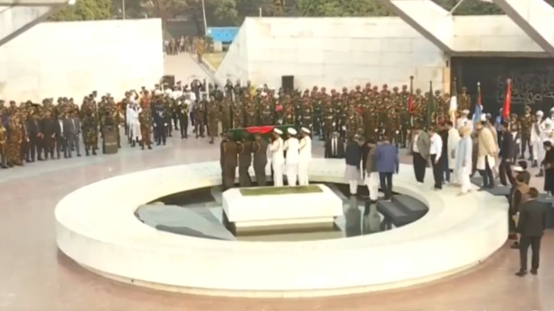 এর আগে দুপুর ৩টা ৫ মিনিটে জাতীয় সংসদ ভবন ও মানিক মিয়া অ্যাভিনিউতে লাখ লাখ মানুষের অংশগ্রহণে খালেদা জিয়ার জানাজা অনুষ্ঠিত হয়। জানাজায় অংশ নেন প্রধান উপদেষ্টা অধ্যাপক মুহাম্মদ ইউনূস, বিএনপির ভারপ্রাপ্ত চেয়ারম্যান তারেক রহমান, জামায়াতের আমির শফিকুর রহমান, জাতীয় নাগরিক পার্টির আহ্বায়ক নাহিদ ইসলাম, বিএনপির মহাসচিব মির্জা ফখরুল ইসলাম, বিভিন্ন রাজনৈতিক দলের নেতা কর্মী, বিভিন্ন দেশের রাষ্ট্রদূত ও অন্যরা।