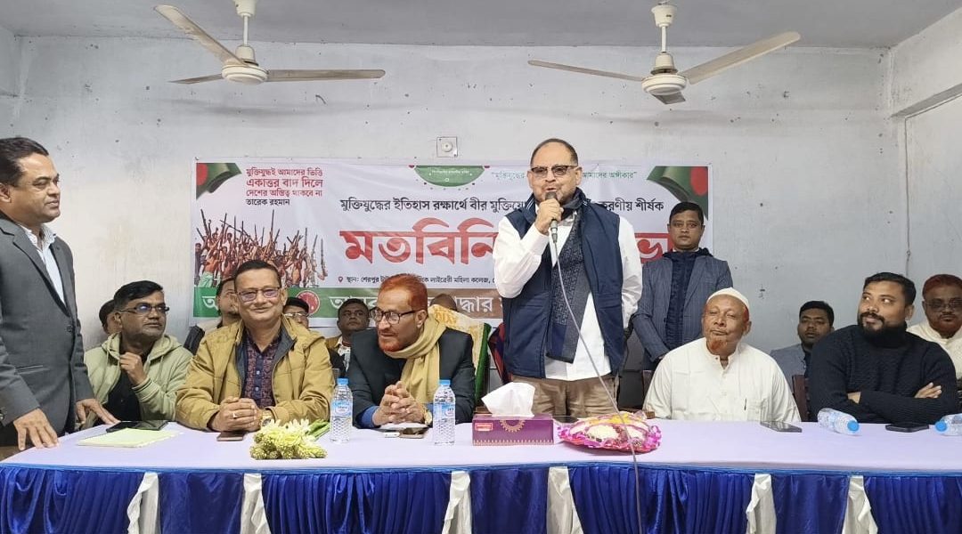 “মুক্তিযুদ্ধের চেতনা বাস্তবায়নই আমাদের অঙ্গীকার”—এই প্রতিপাদ্যকে সামনে রেখে মুক্তিযুদ্ধের ইতিহাস সংরক্ষণ, ইতিহাস বিকৃতি রোধ এবং ভবিষ্যৎ প্রজন্মের কাছে সঠিক ইতিহাস তুলে ধরার লক্ষ্যে বগুড়ার শেরপুরে বীর মুক্তিযোদ্ধার সন্তানদের করণীয় শীর্ষক এক মতবিনিময় সভা অনুষ্ঠিত হয়েছে।