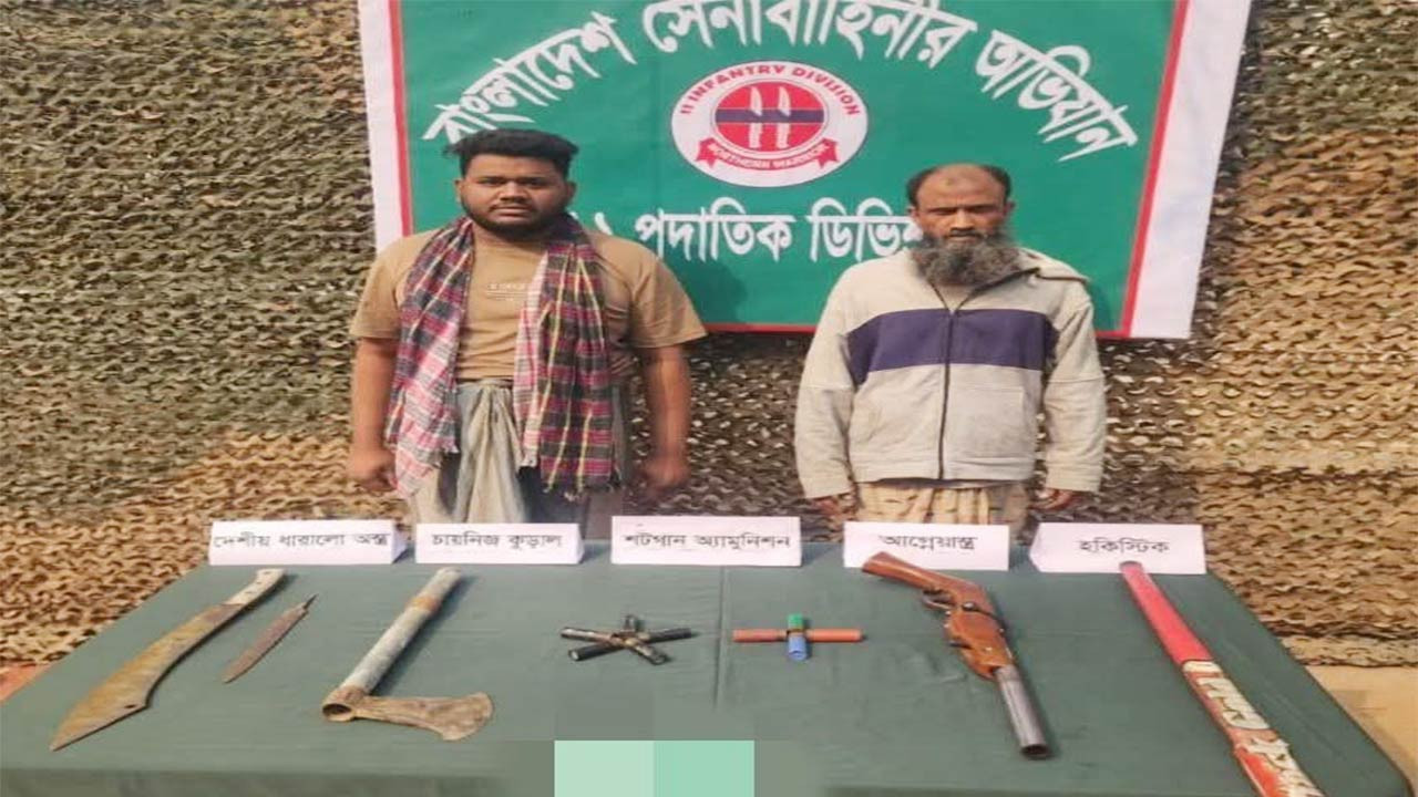 শেরপুরে সেনাবাহিনীর যৌথ অভিযানে শর্টগান গুলিসহ ২ জন গ্রেফতার