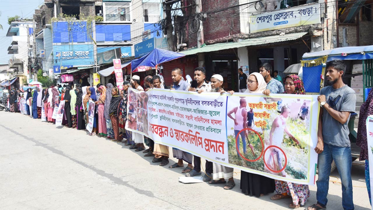 শেরপুর নিউজ ডেস্ক: বগুড়ার শেরপুরে ৪০টি ভূমিহীন পরিবারকে উচ্ছেদের জন্য ভাংচুর, লুটপাট ও অগ্নি সংযোগের প্রতিবাদে মানববন্ধন ও স্মারকলিপি