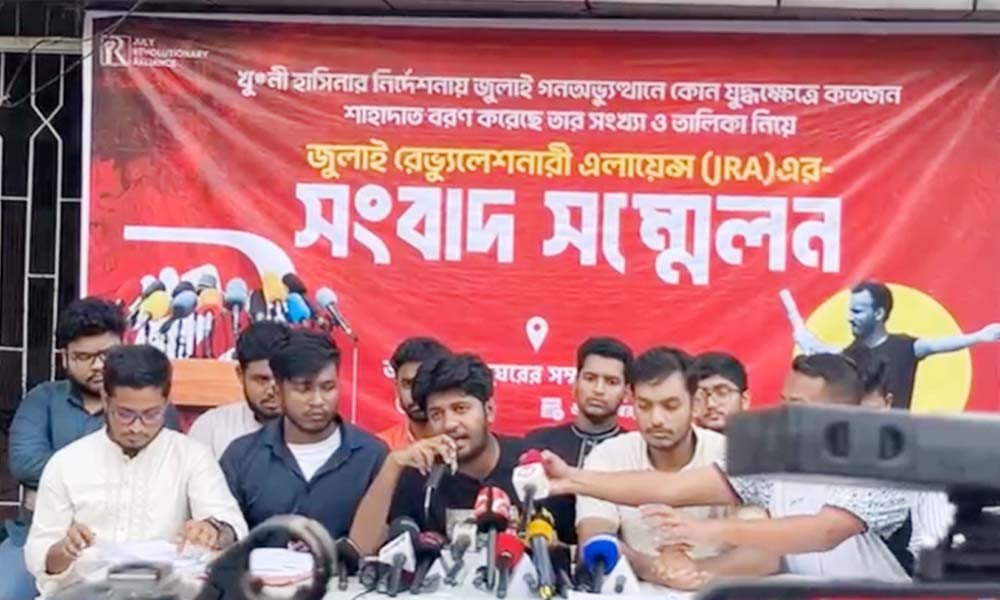 শেরপুর নিউজ ডেস্ক: জুলাই গণ-অভ্যুত্থানে ৯১৪ জন শহীদের তালিকা প্রকাশ করেছে জুলাই রেভল্যুশনারি অ্যালায়েন্স বাংলাদেশ। শনিবার বিকেলে রাজধানীর শাহবাগে