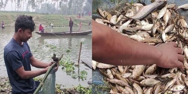 করতোয়া নদীতে ভেসে উঠছে বিভিন্ন প্রজাতির মাছ